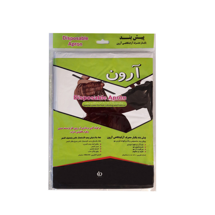 پیش بند یکبار مصرف آرایشگاهی آرون مدل AA-1 بسته 12 عددی، با دارا بودن سیب سبز سلامت و پروانه ساخت و بهره برداری از وزارت بهداشت موجب اطمینان خاطر مصرف کننده شده است. این محصول، تولید شده از مواد پلی اتیلن مرغوب، ضدآب و نفوذ ناپذیر، لطیف و مقاوم و بدون بو می باشد. پیش بند یکبار مصرف آرایشگاهی آرون مدل AA-1 بسته 12 عددی، موجود در رنگ های متنوع، برای مصارف مختلفی از قبیل اصلاح، رنگ کردن مو، شستشوی مو و ... در آرایشگاه ها و منازل قابل استفاده می باشد. با توجه به لزوم رعایت بهداشت فردی در دوران کرونا، توصیه می شود اشخاص برای مصارف مختلف و در مکان های مختلف منجمله پرسنل های کارخانجات، سالن های تولید مواد غذایی و مواد بهداشتی، مطب پزشکان و دندانپزشکان، چاپخانه، رستوران، آرایشگاه، شیرینی فروشی، سوپرمارکت، قصابی ، نانوایی، خوار و بار فروشی، سبزی فروشی و ... از پیش بند یکبار مصرف آرون در طول روز، روی لباس روزانه خود استفاده نموده و با تعویض مکرر و آسان پیش بند در ساعات مختلف روز مانع از انتقال آلودگی شوند.