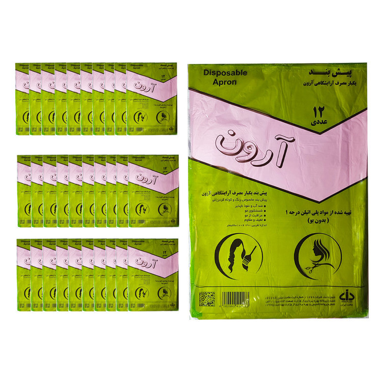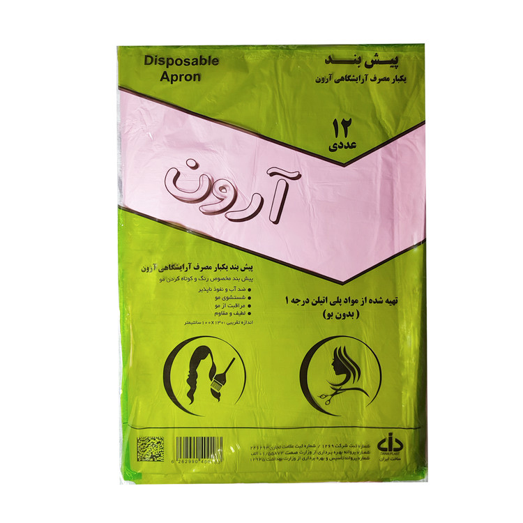 پیش بند یکبار مصرف آرایشگاهی آرون مدل AA-1-100 PKG مجموعه 100 عددی، با دارا بودن سیب سبز سلامت و پروانه ساخت و بهره برداری از وزارت بهداشت موجب اطمینان خاطر مصرف کننده شده است. این محصول، تولید شده از مواد پلی اتیلن مرغوب، ضدآب و نفوذ ناپذیر، لطیف و مقاوم و بدون بو می باشد. پیش بند یکبار مصرف آرایشگاهی آرون مدل AA-1-100 PKG مجموعه 100 عددی، موجود در رنگ های متنوع، برای مصارف مختلفی از قبیل اصلاح، رنگ کردن مو، شستشوی مو و ... در آرایشگاه ها و منازل قابل استفاده می باشد. از پیش بند یکبار مصرف آرون در طول روز، روی لباس روزانه خود استفاده نموده و با تعویض مکرر و آسان پیش بند در ساعات مختلف روز مانع از انتقال آلودگی شوند.